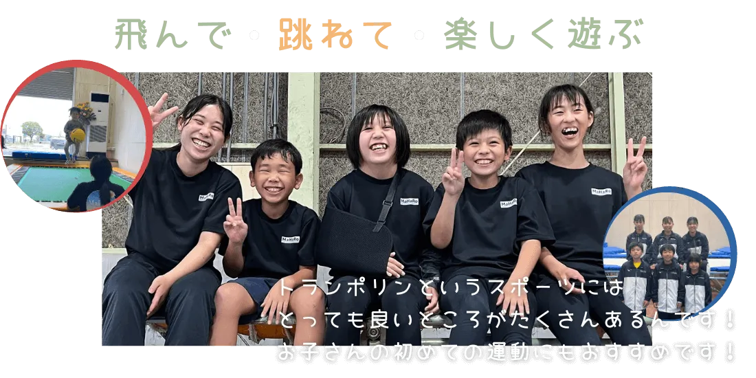 未就学児から大人まで楽しめるトランポリン教室で、仲間とともにたくさんの笑顔を咲かせませんか。全身を使って跳びはねるトランポリンは、筋力やインナーマッスル(体幹)を鍛えるほか、バランス感覚やリズム感、空間認知能力など、心と身体、脳の様々な力を育みます。菊陽町にてレクリエーションコースと選手コースを用意しており、年齢や目的に合わせた豊富なクラスを取り揃えているため、子供の習い事から大人のリフレッシュまで、多彩なニーズに寄り添ってまいります。まずは体験レッスンからお気軽にチャレンジしていただけます。