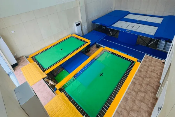 熊本県道138号辛川鹿本線沿いの白鈴こども園近くにあり、駐車場も多数ご用意しているトランポリン教室です。跳ぶ楽しさを通じて「できた」という喜びをプレゼントする場所を目指し、0歳から親子で参加いただけるクラスから、大人に限定したクラスまで幅広く開催しております。まずは手軽に参加できる体験レッスンから、跳びはねる楽しさと奥深さ、トランポリンの魅力を体感いただけます。